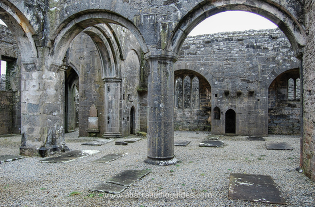 The site is on the shore of Killala Bay and should be visited in conjunction with the neighbouring Third Order friary of Rosserk. Remains: church, chapels, tower and friary are practically complete.