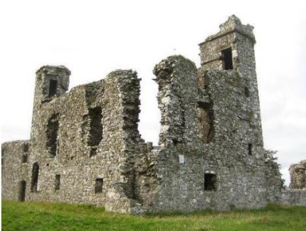 The ruined buildings on top of the Hill of Slane are the remains of a 1512 reconstruction of the old monastery which the Fleming family re-built for the Franciscans. The church has a fine west tower, about 19m high, with an earlier gothic-style window. The college, forming separate building a quadrangle, housed four priests, four lay-brothers and four choristers. Look for a number of carved heads and gargoyles. The Fleming arms are on the west wall of the quadrangle, and over the entrance in the southwest wall are the arms of England and France referred to above.