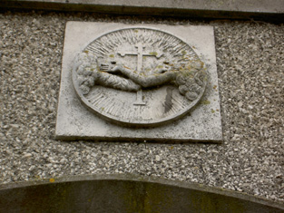 The remains of the old friary (Carrickbeg) have been incorporated into the present parish church across the road from the present friary; N.B. – the unusual tower, riding on the church wall, and the carved figures around the church door.
