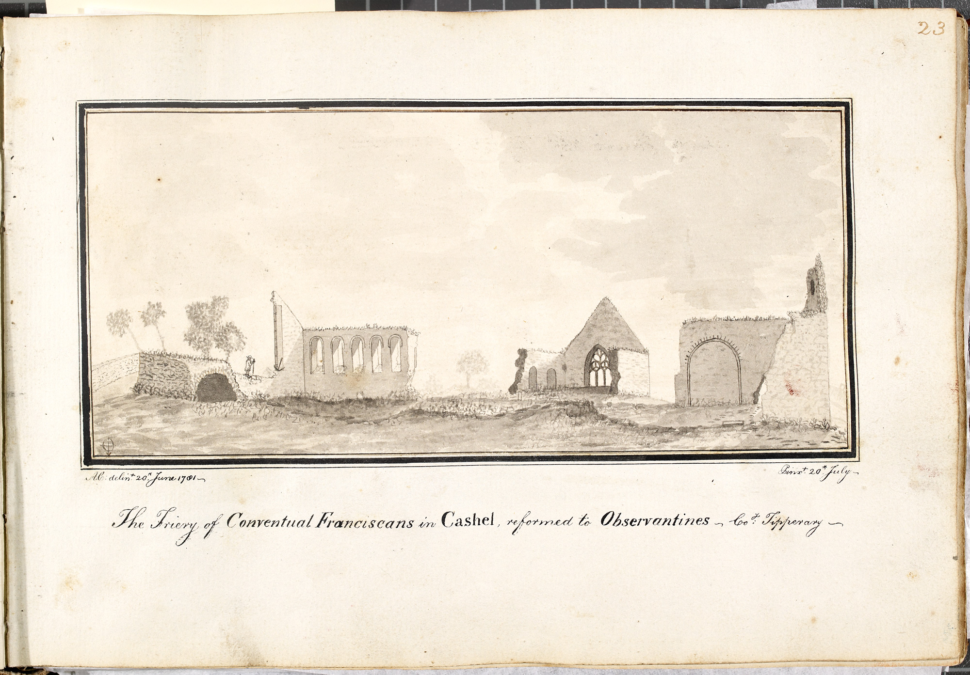 ‘Hacket’s Abbey’ was founded by Sir William Hacket about 1265. It later became the head-house of one of the custodies of the Irish Franciscan Province. Despite the fact that the Anglican archbishop got possession of the friary at the Suppression, the friars were able to remain on until about 1550. One famous friar in Cashel at this period was the notorious Myler Magrath. The friars returned to Cashel in 1618, but left after the sacking of the town by Lord Inchiquin in 1647. The friars were back by 1658 and remained on until the eighteenth century.